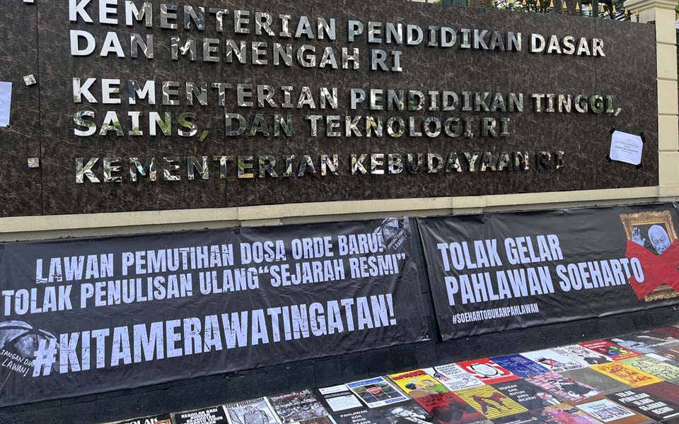 Jakarta – Protesters from the Civil Society Coalition Against Impunity held a demonstration in front of the Ministry of Culture building in Jakarta on Thursday June 26 in which they rejected the discourse on awarding the title of national hero to the 2nd President of the Republic of Indonesia, Suharto, and criticised