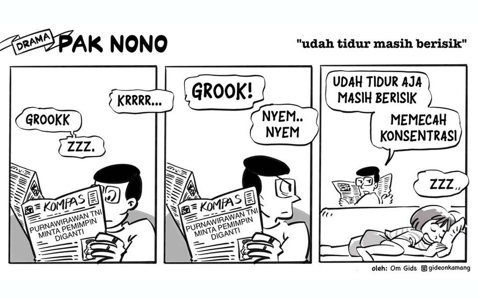 Poki: ZZZ (newspaper reads "Retired TNI officers call for leader to be replaced").