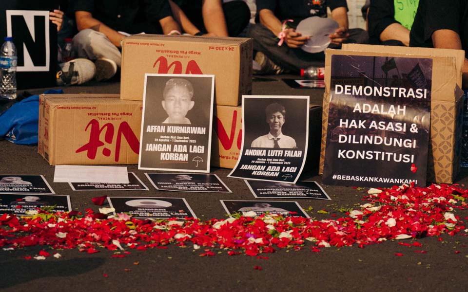 Jakarta – The Civil Society Coalition held a protest action on Tuesday September 30 to commemorate one month since the death of Affan Kurniawan, who was run over by a Metro Jaya Regional Police (Polda) paramilitary Mobile Brigade (Brimob