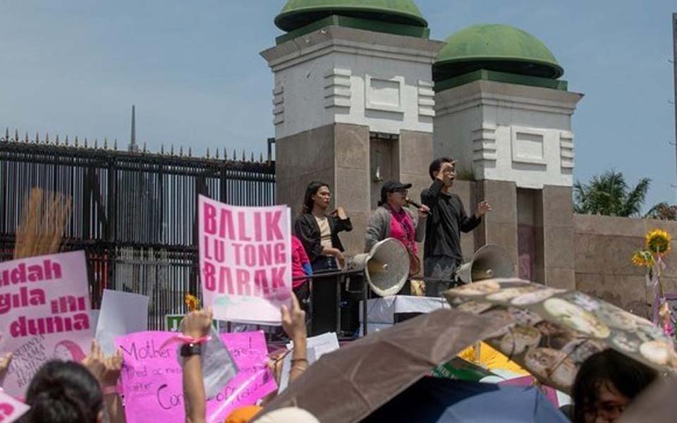 Jakarta – Protesters consisting of students, academics and civil society activists held a peaceful demonstration titled "The National People's Picnic" in front of the parliament building in Senayan, Central Jakarta, on Friday September 5.