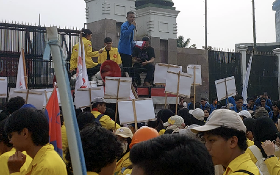 Jakarta – Hundreds of students from a number of universities in the Greater Jakarta area (Jabodetabek) held a demonstration in front of the House of Representatives (DPR) building today to call in the fulfilment of the 17+8 People's Demands issued during the previous wave of demonstrations on August 25-31.