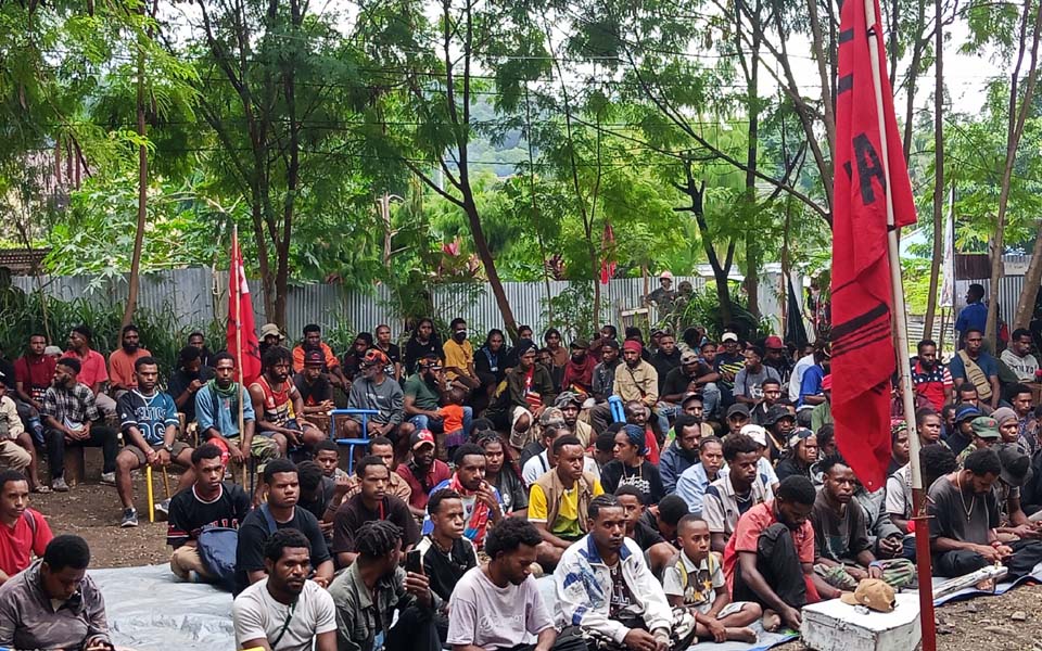 The crowd gathered at four points: the Sorong Ramayana Mall, the Km 10 traffic lights, the Malanu Anda Kios and on Jalan Baru (Puri Bridge). They then marched to the main action point at the Elin shop traffic lights in Sorong city.