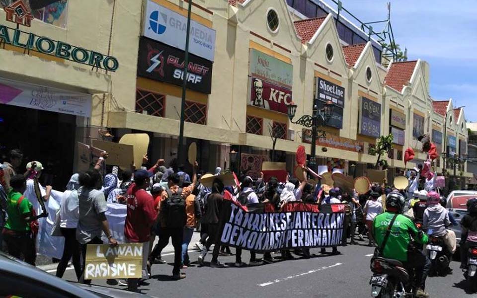 Jakarta (BM) – Protesters calling themselves the Civil Society Alliance Against the Draft Criminal Code (RUU KUHP) held a rally on Monday February 12 in front of the House of Representatives (DPR) rejecting the draft law which they say is anti-democratic.