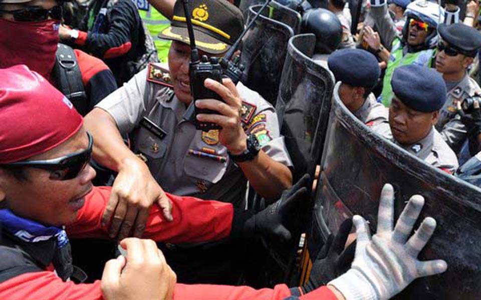 Petunia – Students planning to convey concerns their about the commercialisation of education to President Joko “Jokowi” Widodo at the Hasanuddin University (Unhas) in the South Sulawesi provincial capital of Makassar have been blocked by fully armed soldiers and paramilitary police.