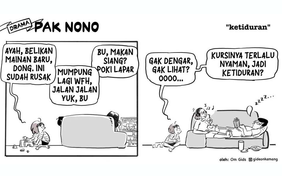Poki: Dad, buy me a new toy, this one's broken already. Take advantage of working from home, let's go for a trip. Mum, what about lunch, I'm hungry. Not listening, not seeing, ooh, the seat's too comfortable, so you've fallen asleep.